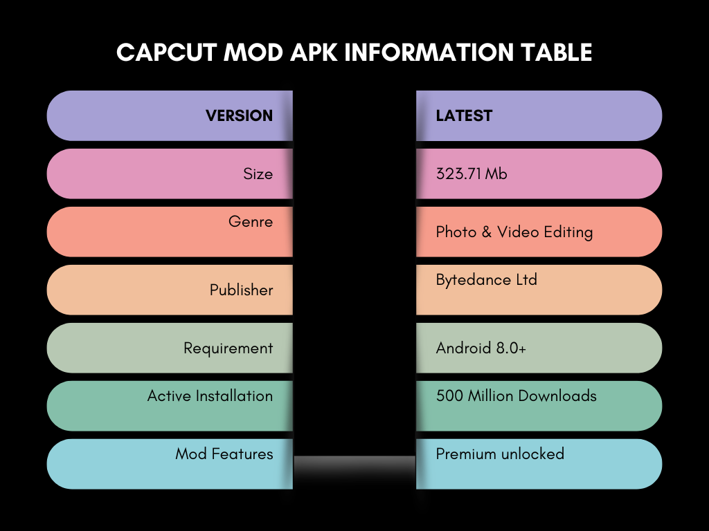 CapCut Mod APK Information Table (App Details)